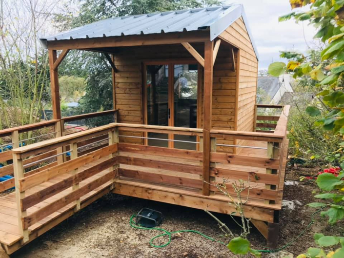 Construction d’une plateforme sur pilotis avec cabane de jardin