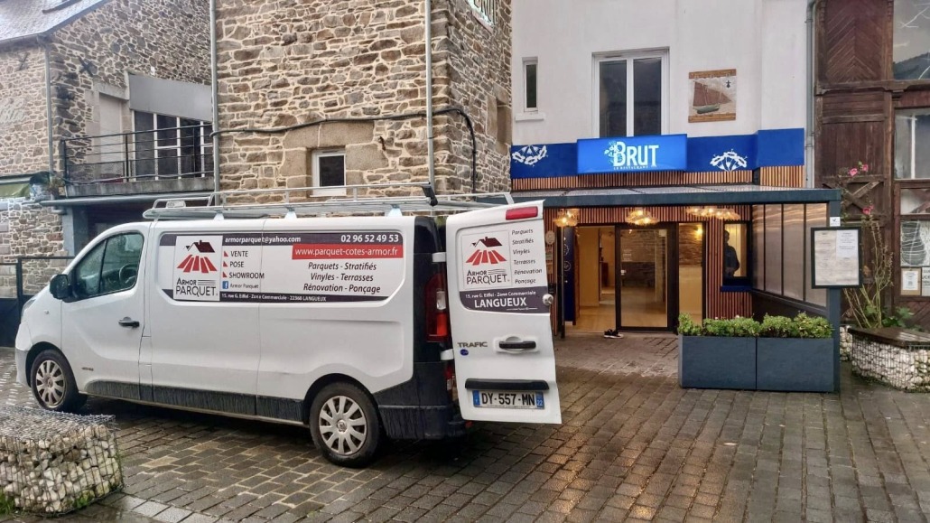 🪓⚒️🪚 : Intervention suite dégât des eaux 💦 – Réfection complète des revêtements de sol à BRUT le Restaurant 🥒🥩🧀🥗🥘🦪🍧 au Légué ⚓️ ⛵️ – Pose flottante d’un stratifié Parador chêne 🌳 Loft Pure aspect bois brut 🪵🔥 – Merci au Chef 👨🏻‍🍳 Jean Jacques Monfort pour la Confiance 😁👍