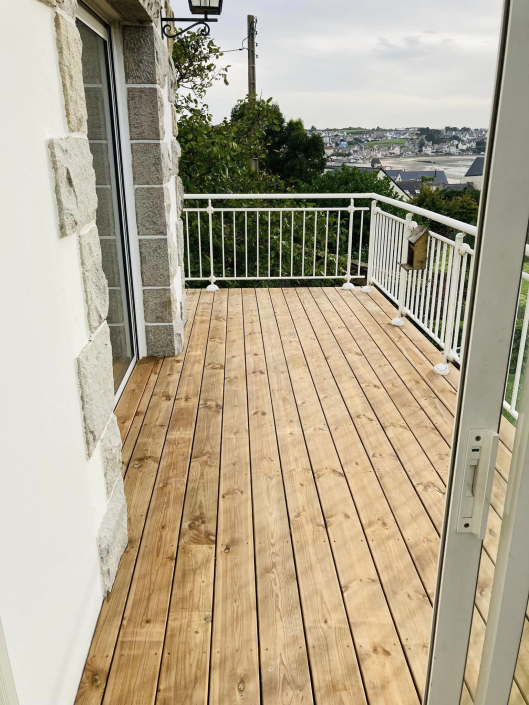 🪚⚒🪓Recouvrement d’une terrasse-balcon en béton avec Lames en Pin des Landes cl.4 brun 🌲 – Chantier avec Vue Mer 🌊⚓️⛵️🐬🔥