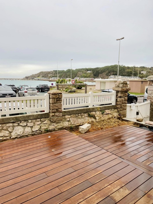 Réalisation d’une Terrasse sur lambourdes et Solivage Ossature pin des Landes 🌲🪵 , recouvrement en lames de terrasse en MOSO Mastering Bamboo 🐼🎋 teinté ipé 🌴 sur le front de Mer 🌊🏡⚓️🛟⛵️– en attente de paysagisme avec Pascale Foullon 🔥🤩