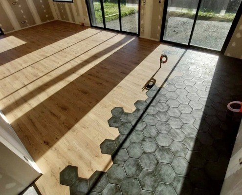 Pose d’un revêtement de sol stratifié aspect bois brûlé