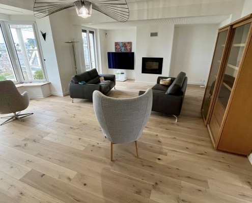 Pose collée à la française – Parquet Contrecollé en chêne vieilli