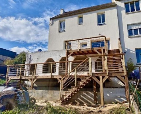 Réalisation d’une Terrasse en Pin des Landes sur Pilotis à Deux étages